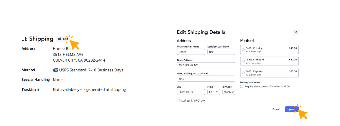 Orders in Processing, Filling or On Hold statuses allow you to edit the shipping method.